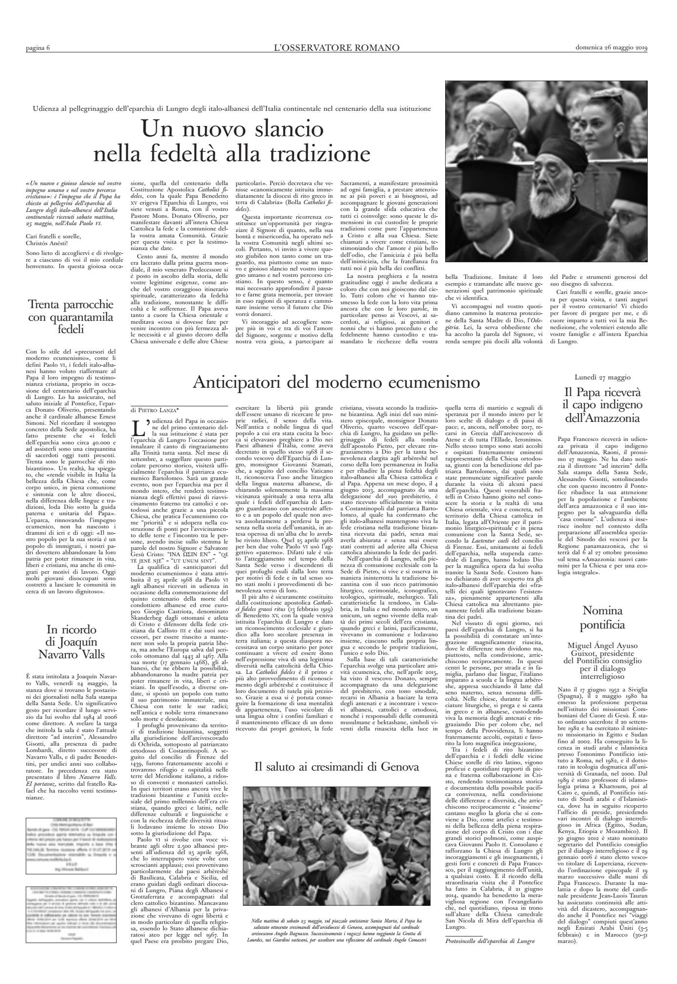 Osservatore Romano, 26 maggio 2019