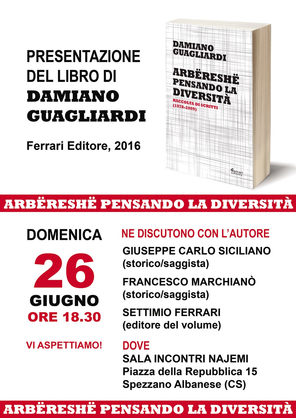 La presentazione si terrà a Spezzano Albanese, domenica 26 giugno alle 19,00, presso il Centro incontri NaJemi – P.za della Repubblica 15 -.