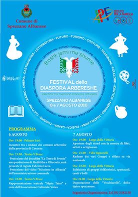 Il 6 e 7 agosto a Spezzano Albanese (Spixana), si svolgerà il primo Festival della Diaspora Arbëreshe.