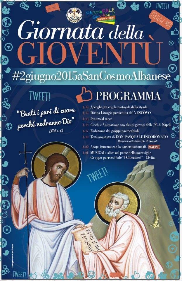 L'edizione 2017 della giornata della gioventù dell'Eparchia di Lungro avrà come sede il santuario diocesano dei santi Cosma e Damiano a San Cosmo Albanese. L'evento, promosso dalla commissione per la pastorale giovanile dell'Eparchia, si svolgerà il 2 giugno ed avrà come tema "Facciamo insieme, di nuovo, una grandiosa giornata della gioventù".