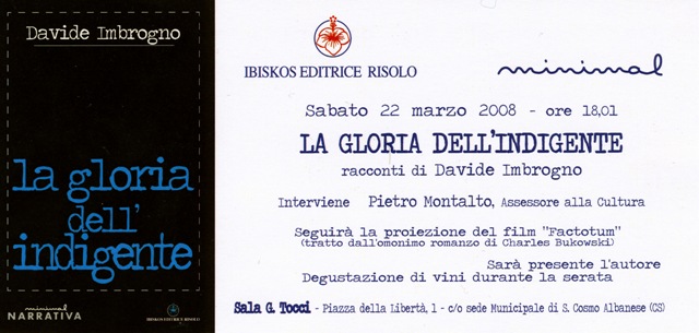 gloria dell'indigente" di Davide Imbrogno,che si terrà sabato 22 marzo
