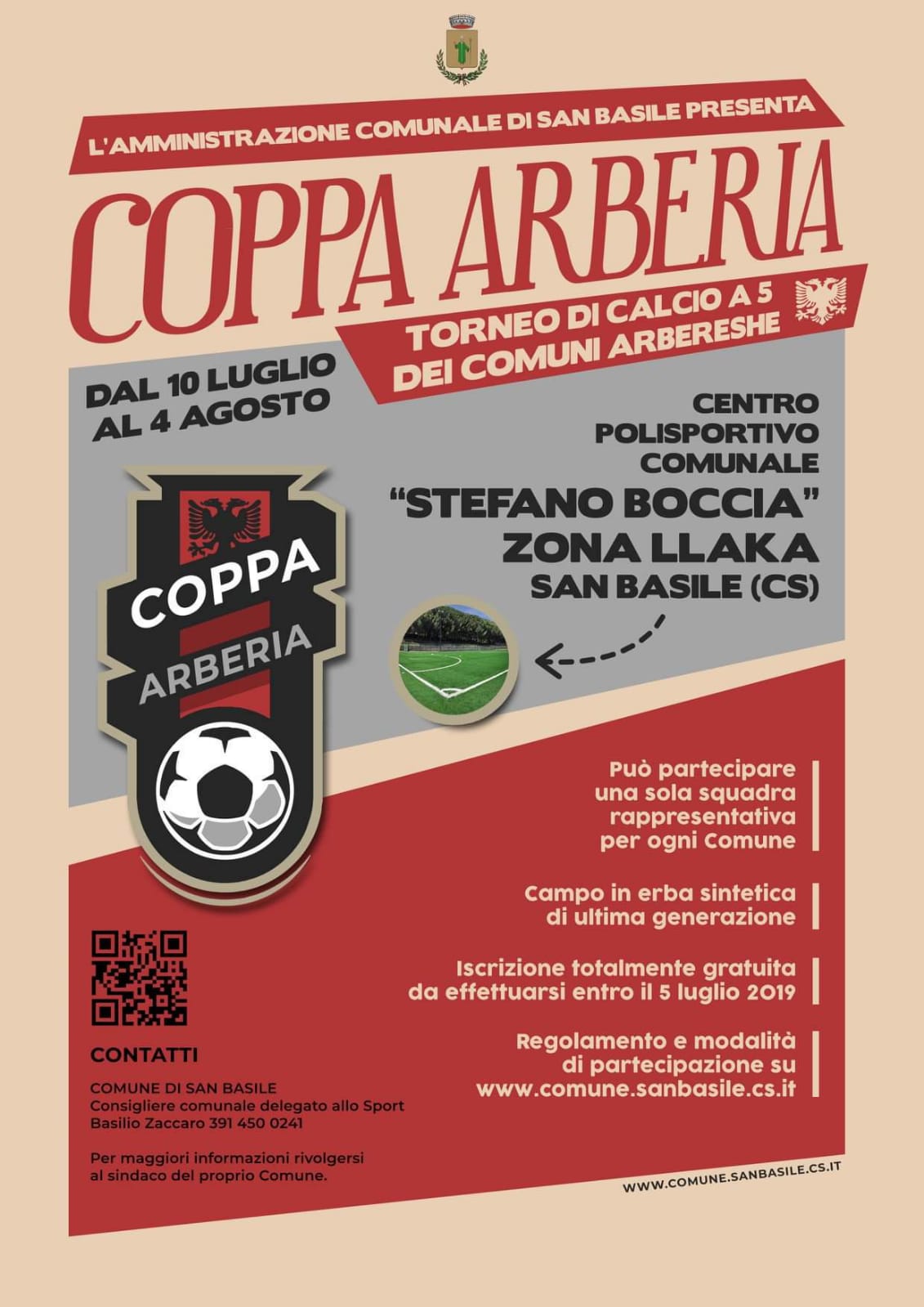 Il prossimo 10 luglio inizierà il torneo "Coppa Arberia", organizzato dal Comune di San Basile. La competizione sportiva è una occasione di incontro tra le comunità che, con spirito di fratellanza ma anche di competizione, si sfideranno a calcetto.
