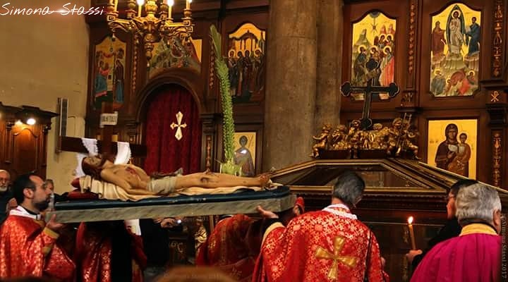 Giovedì 18 aprile (Settimana Santa): ore 10.30 in Cattedrale di San Demetrio per Vespro e Liturgia di San Basilio il Grande – Ufficio della Lavanda dei piedi; ore 17.00 visita ai Sepolcri presso le Chiese di Piana degli Albanesi, ore 18.00 in Cattedrale San Demetrio: Akoluthia ton pathon – Ufficio delle sante sofferenze, mentre alle ore 21 nella stessa cattedrale si svolgerà il Canto del Simeron Kremate. Venerdì 19 aprile (Grande e Santo Venerdì) nella Cattedrale di San Demetrio si svolgeranno le seguenti celebrazioni: ore 10.30 Ufficio delle Grandi e Regali Ore, alle 11.30 Vespro della Deposizione e nel pomeriggio alle 18.00 Ufficio dell’Epitafios thrinos, mentre alle ore 20.30 si terrà la Processione per le vie del paese.