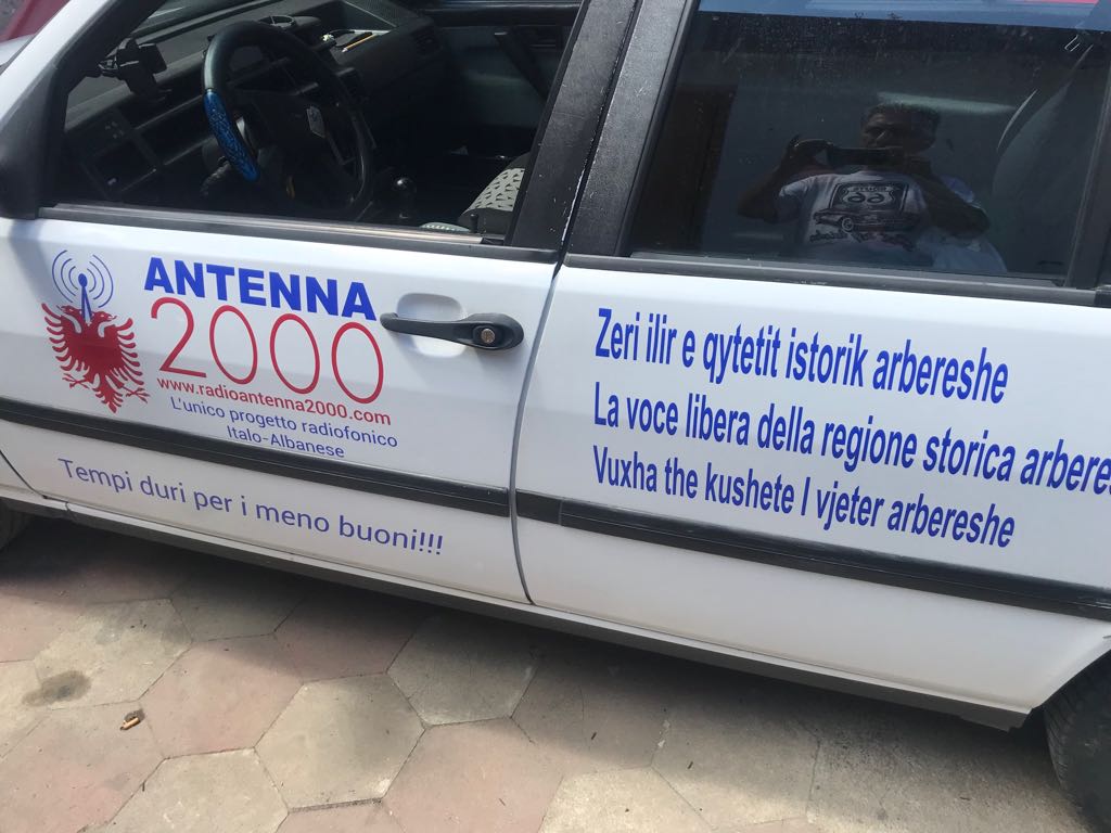 Roberto Verta, uno dei pionieri della radiofonia privata del Cosentino se non della Calabria, Responsabile della Radio e grande sognatore, ha cominciato a muovere i primi passi nella radiofonia negli anni ’80 e si è fatta una solida esperienza nei primi anni ’90 prima con Radio Antenna 3, poi collaborando con il compianto Gianni Macri al grande progetto di Radio Shpresa Europa 1, in San Demetrio Corone. Roberto Verta con Radio Antenna 2000, da anni, continua l’impegno nella diffusione di informazioni a 360 gradi sul mondo arbëresh, tenendo ben saldo in mano il testimone lasciatogli da Gianni Macri, diffondendo musiche arbëreshë, ma anche italiane ed albanesi e con questa radio ha avuto una geniale intuizione varando il progetto di Feissbuck TV che va in onda quotidianamente nei giorni feriali alle ore 21.30 . Radio Antenna 2000 che copre una vasta area geografica di almeno 70 km quadrati, ove sono situati i katund italo-albanesi del cosentino, si avvale del servizio Streaming grazie al forte segnale della Fibra presente in Mongrassano. Questo progetto al quale danno la collaborazione preziosa il mattatore Mario Cairo, la dott.ssa Rose Marie Surace ed il fotografo Gianfranco Bellusci, oltre ad altri volontari, si avvale della collaborazioni di personaggi arbëresh di varie parti della penisola, incentra il proprio focus sulla realtà della Regione storica Arbëreshë e quindi sui problemi locali, riuscendo sino ad ora a far partecipare alla trasmissione la maggior parte dei sindaci dei Katund italo-albanesi del Cosentino; trasmissione ovviamente sempre senza filtri e senza nessun tipo di vincolo per gli intervistati. Una vera Radio libera, nel vero senso e sano della parola, aperta a tutte le istanze e problematiche del territorio.